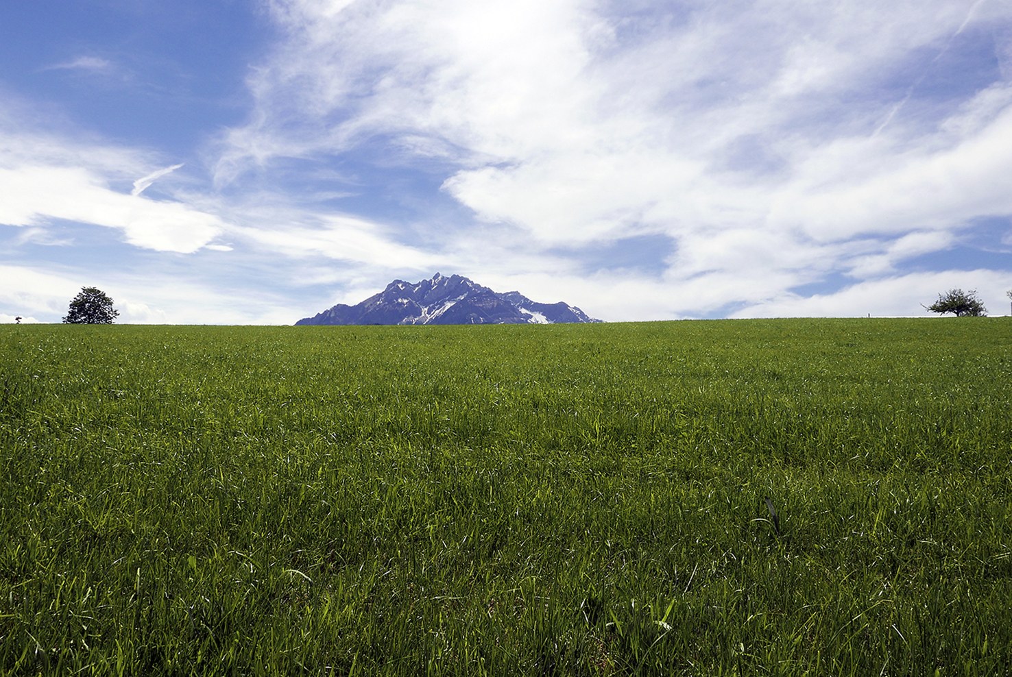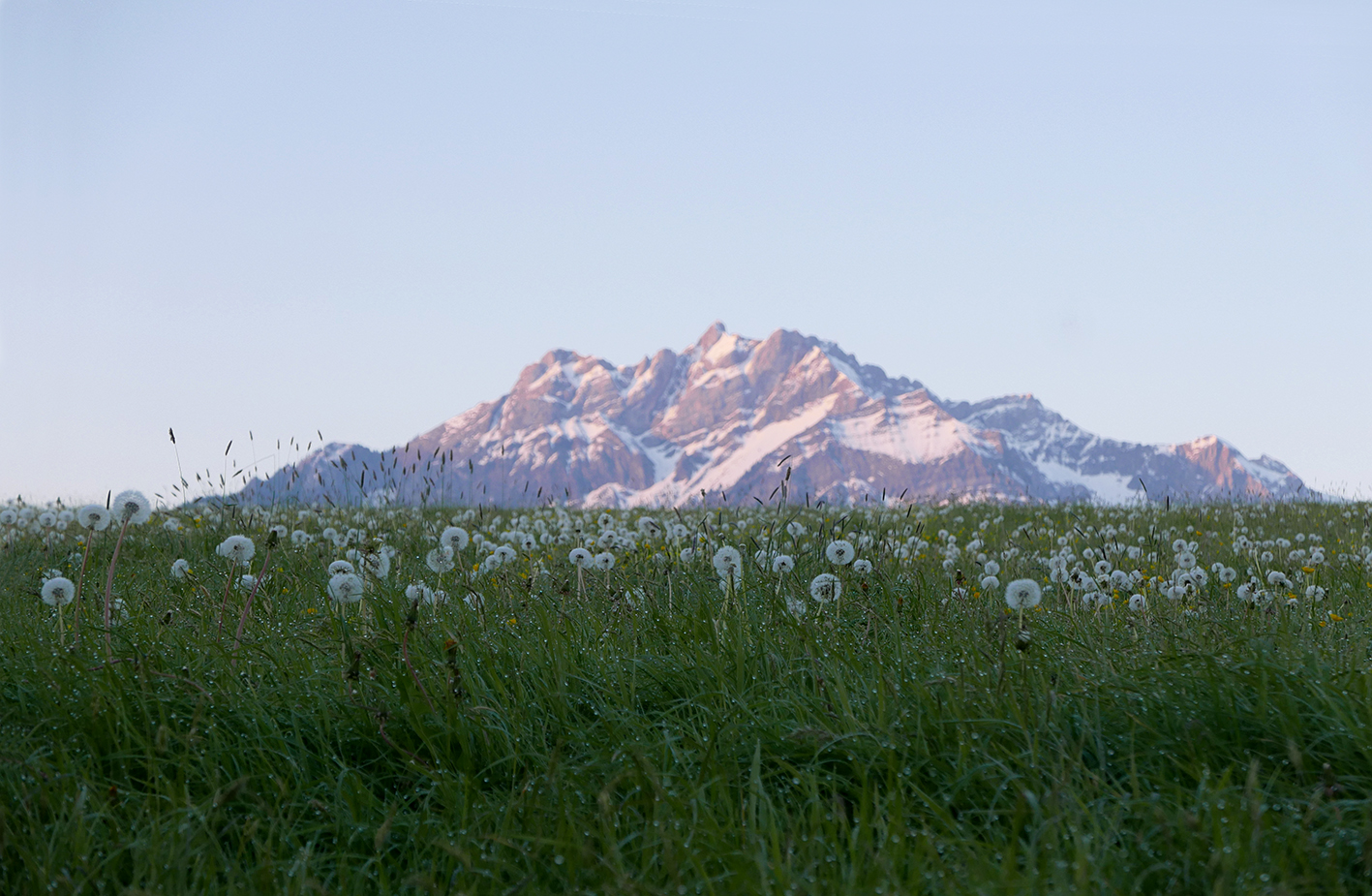 Früher Spaziergang auf dem Sonnenberg mit Sicht auf den Pilatus, Mai 2017
